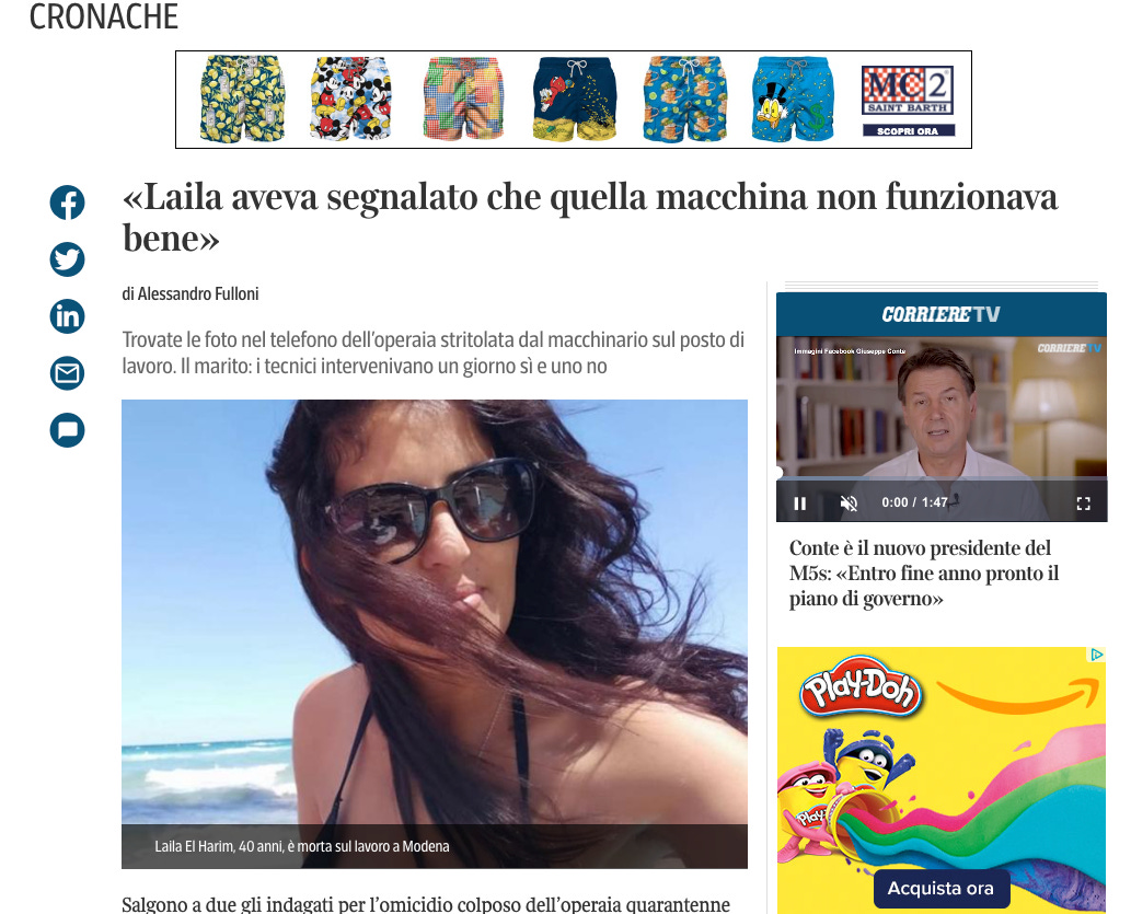 Mi piacerebbe un mondo in cui, se sto leggendo un articolo su una tragedia sul lavoro, non ci fossero in alto dei braghetti da mare che girano, e a destra una scatola di Play-doh.